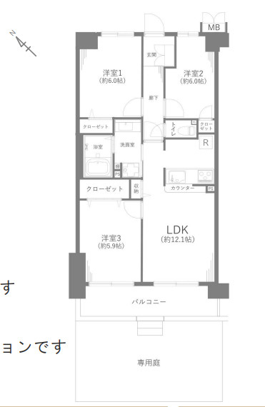 LDK 12.1帖 / 洋室 5.9帖 / 洋室 6.0帖 / 洋室 6.0帖 / |
